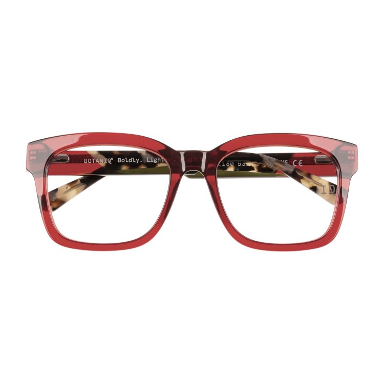 Fashionable square eye with on trend chunky temples accented with Botaniq's signature bold and beautiful laminations.
