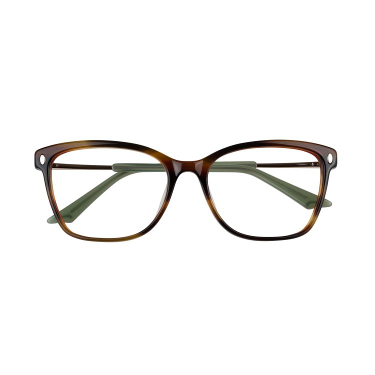 Gentle cat eye shape with handmade acetate eye fronts and British design temple foiling. Completed with Episode signature wave tip plate