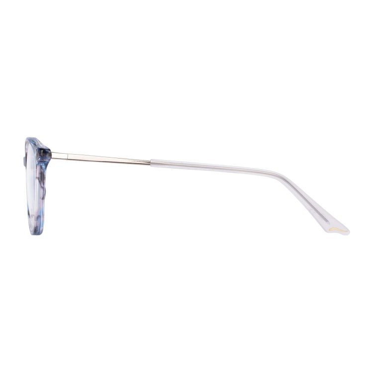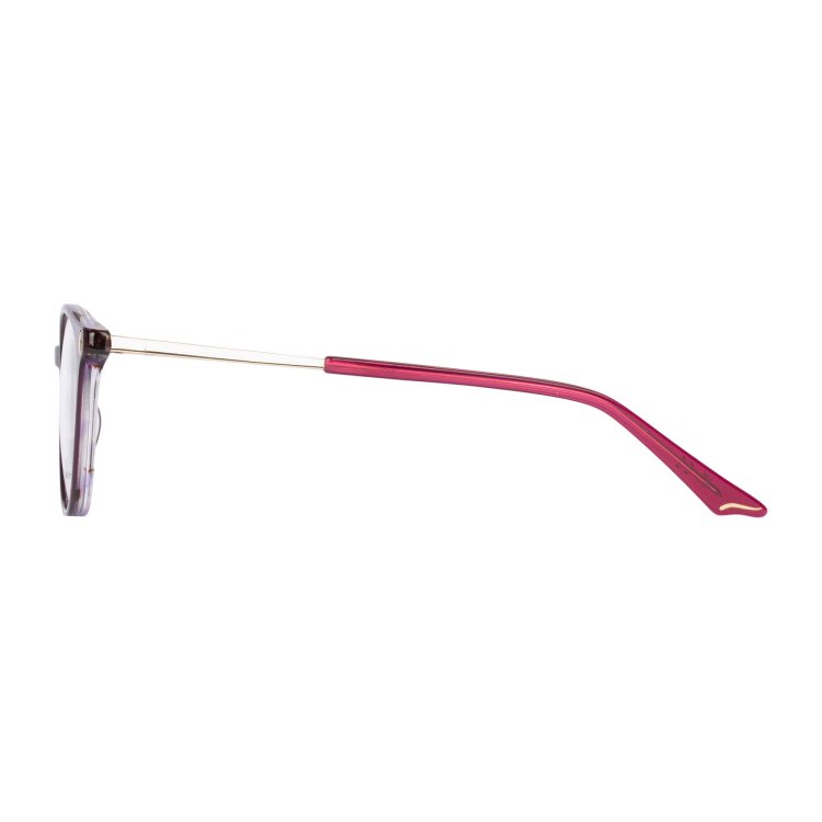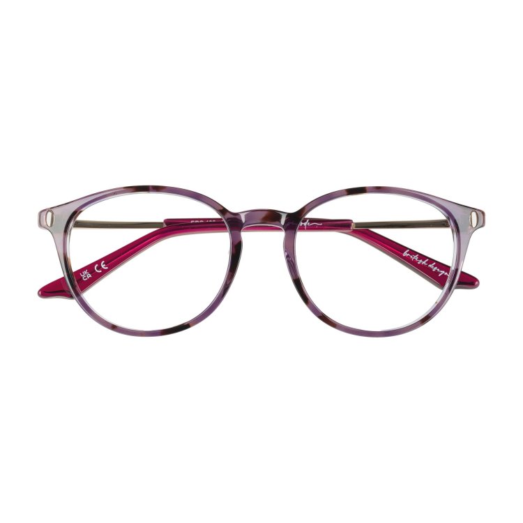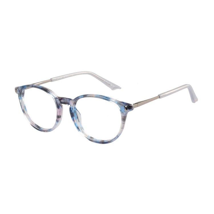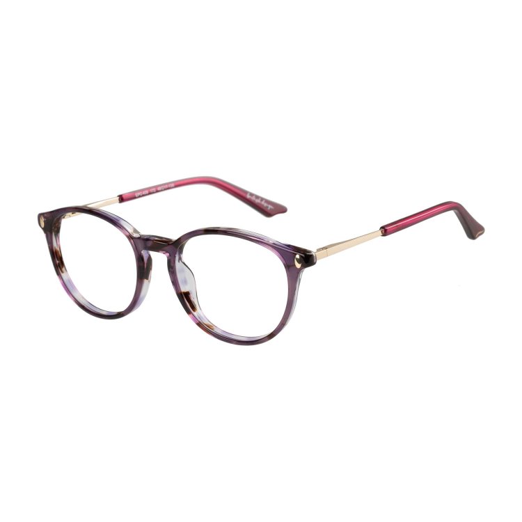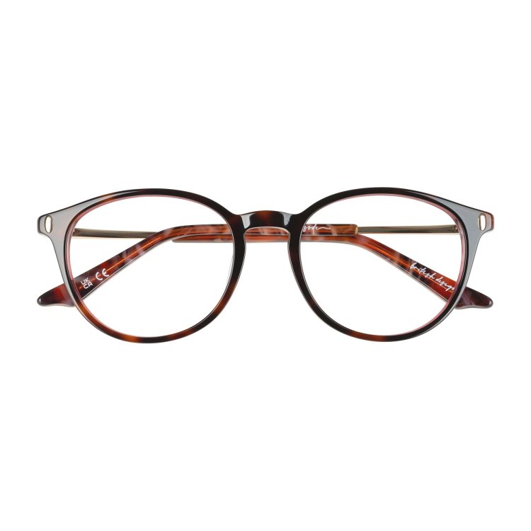 Class small fit round eye. Acetate front with metal pin details. Metal temples with signature scalloped edge temple tips. Foil logos