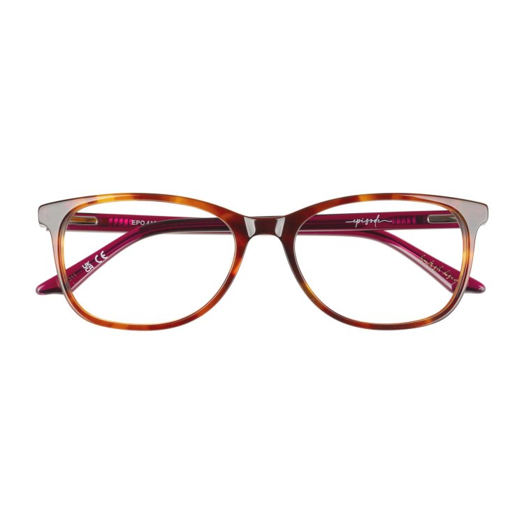 Soft oval acetate frame. Slim temples. Spring hinges. Foil logos. Signature scalloped temple tips.