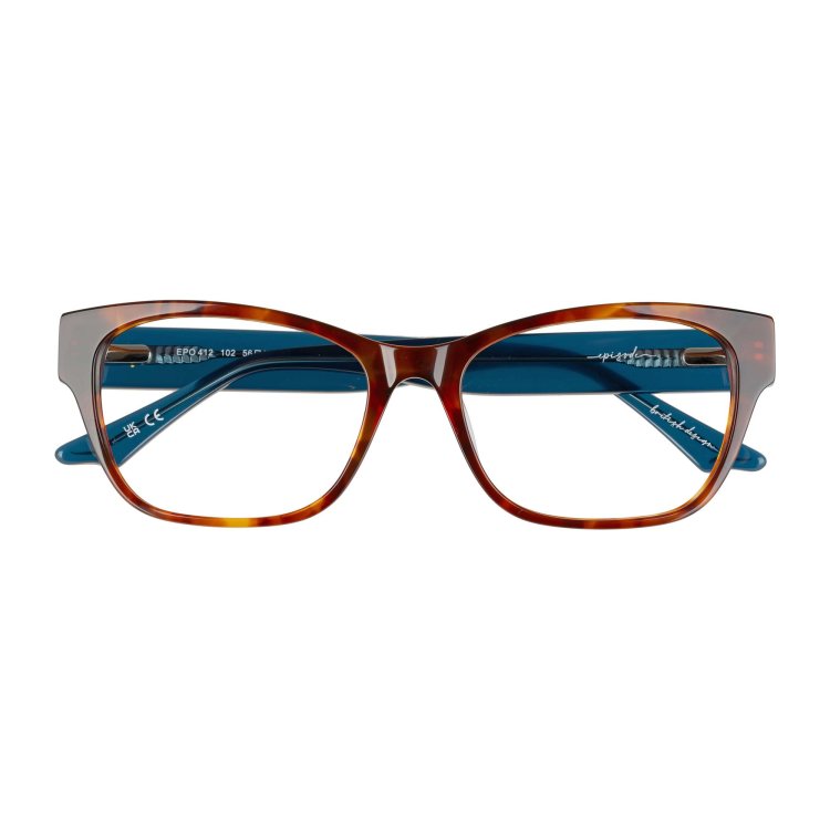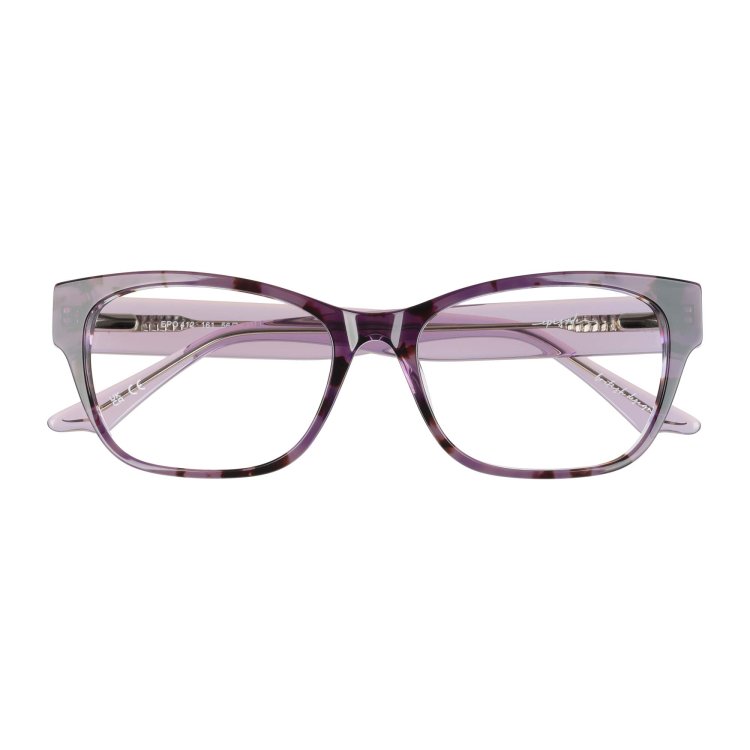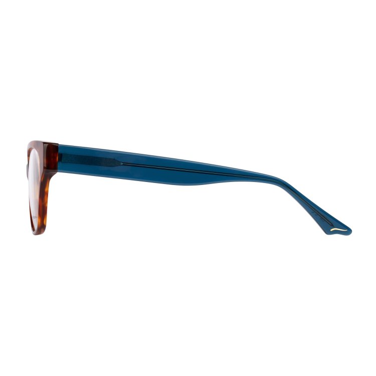 Cateye acetate frame. Chunky temples. Spring hinges. Foil logos. Signature scalloped temple tips.
