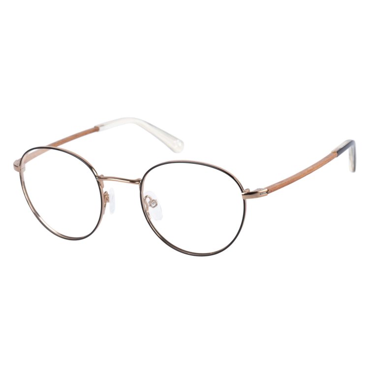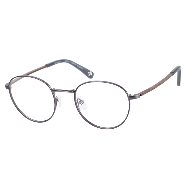 Classic traditional round eye in stainless steel with ultra thin wood temples and adjustable temple tips