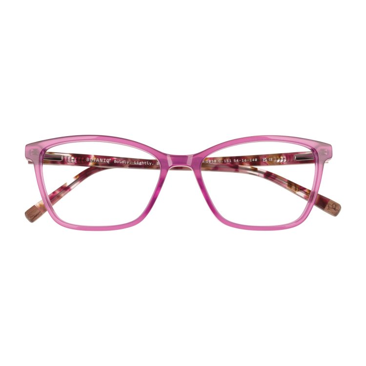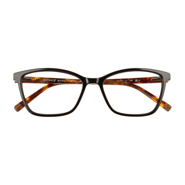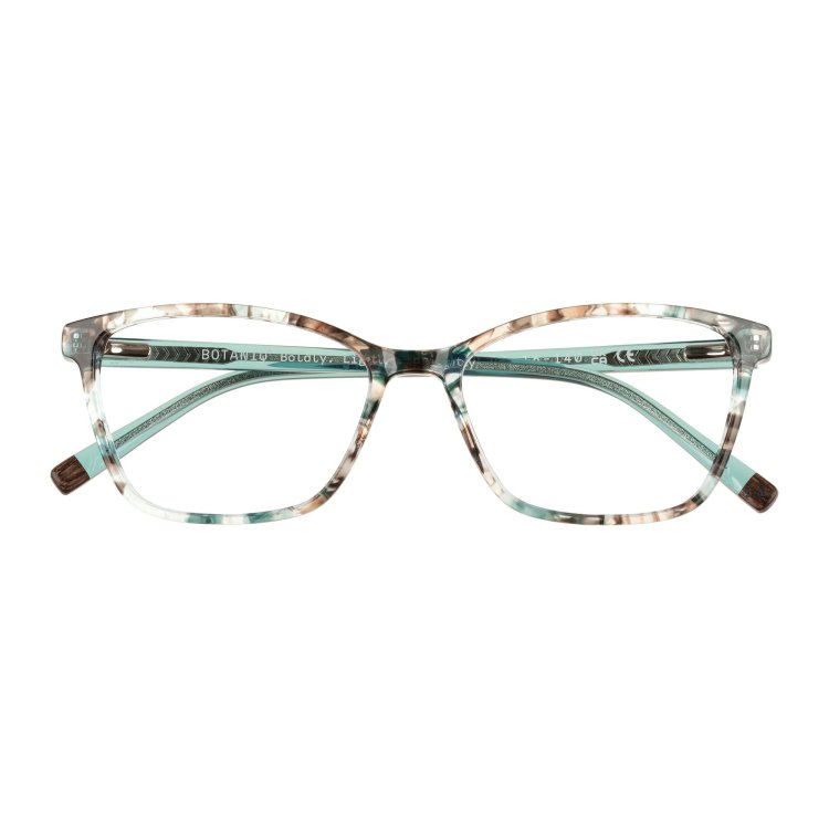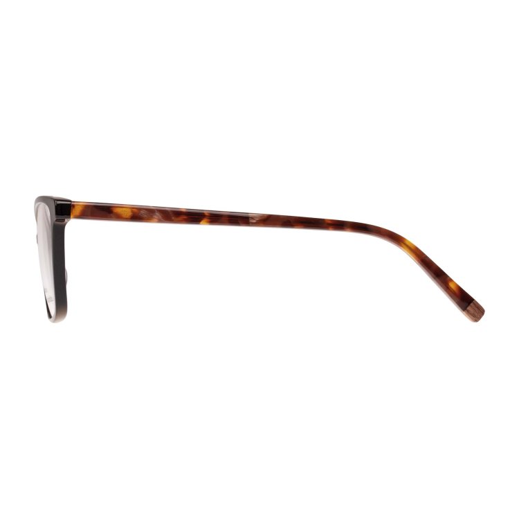 Square cat eye with slim-line temples in sustainable Acetate Renew with accent wood temple tip detail.
