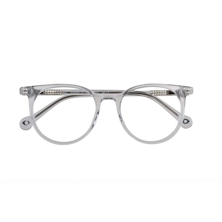 Round eye shape with slim profile in minimalistic handmade crystal acetates