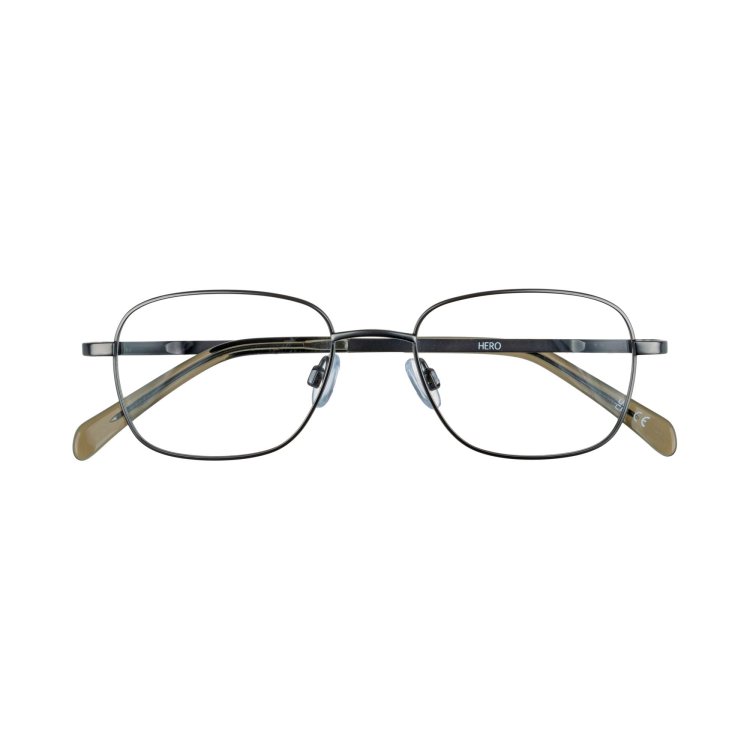 Small square eye titanium style with textured temples and handmade acetate temple tips.