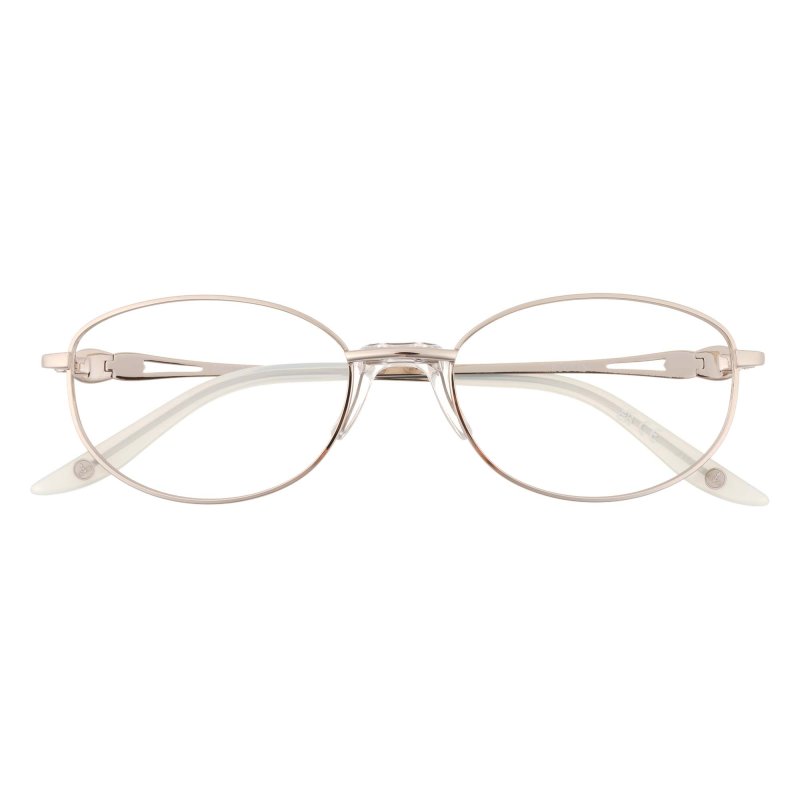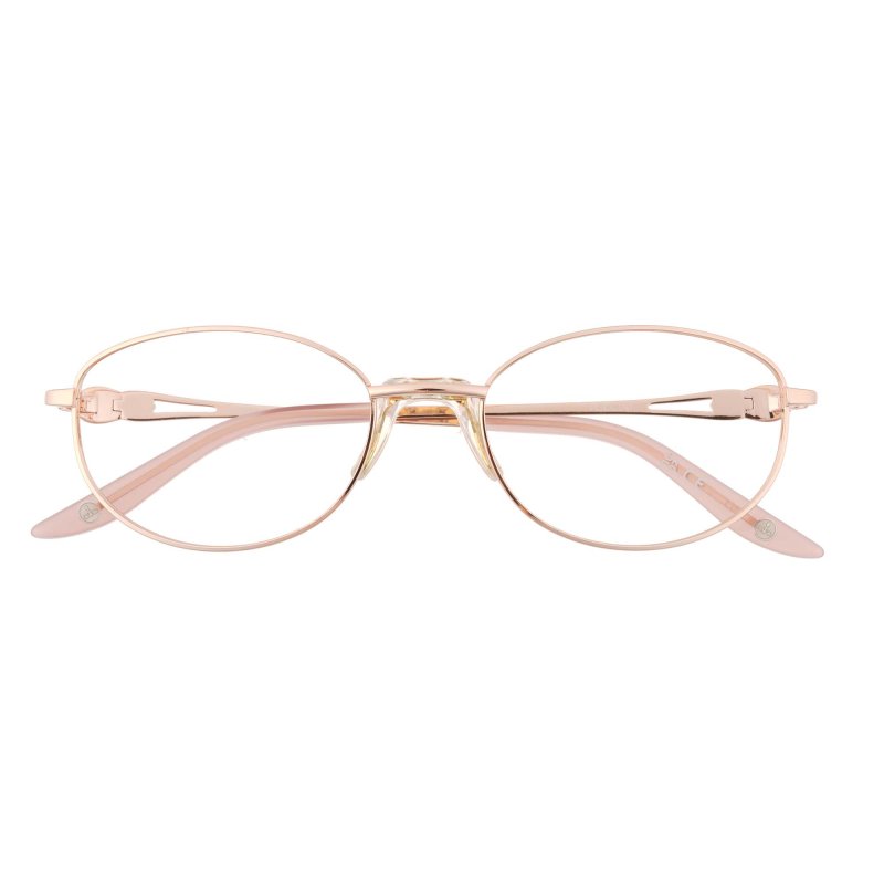 Oval eye rim wire with art deco inspired temple decor, comfort bridge & handmade acetate temple tips.