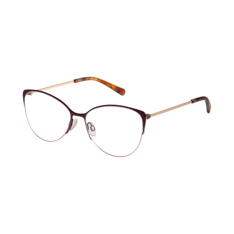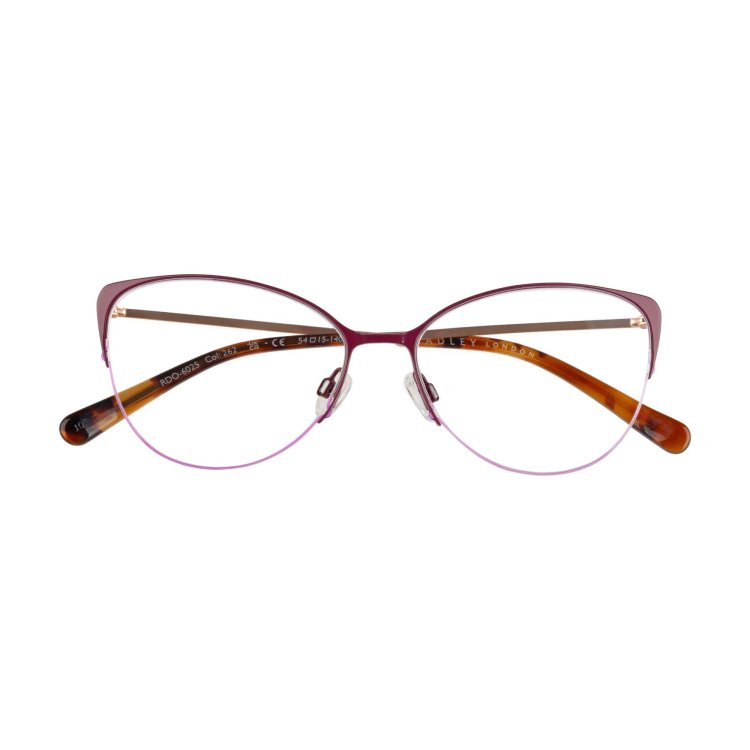 Flattering supra cat-eye with coloured cord under eye. Featuring skinny metal temples with Radley Heirloom Dog logo