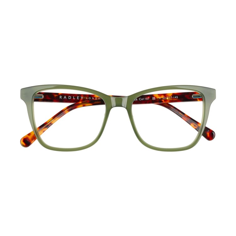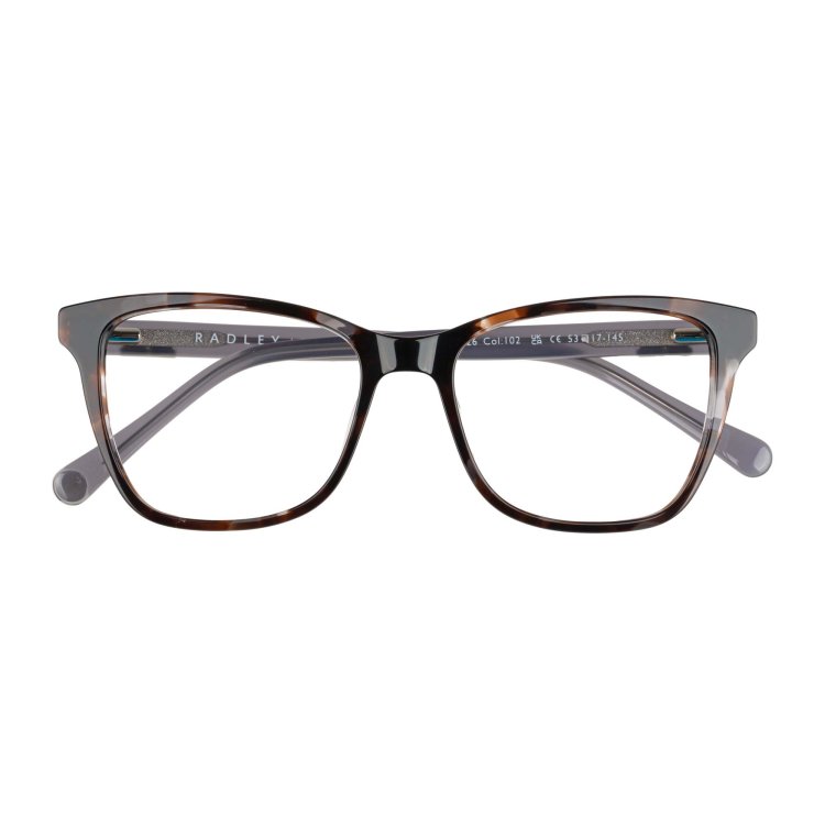 Oversized, chunky, square cat-eye in bio-acetate with Radley Heirloom Dog logo on temples