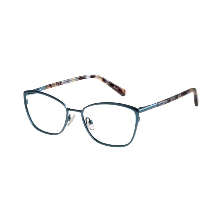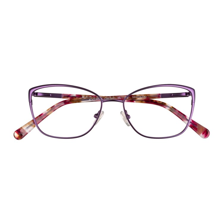 Flat sheet metal, rectangular cat-eye featuring branded metal bar detailing on the temple and long handmade acetate temples