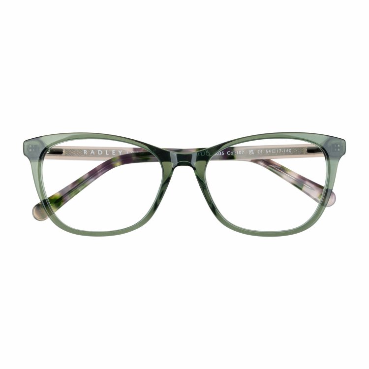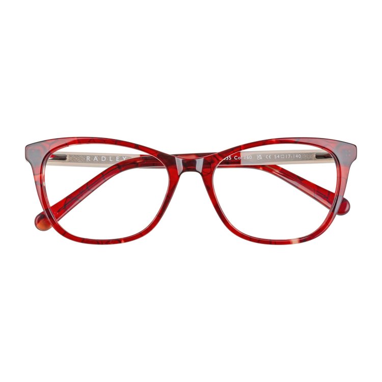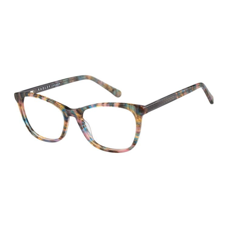 Made from acetate renew. Over sized cat eye shape with temple laminations. Featuring bespoke temple core wire which is debossed with the Radley Heirloom dog logo.