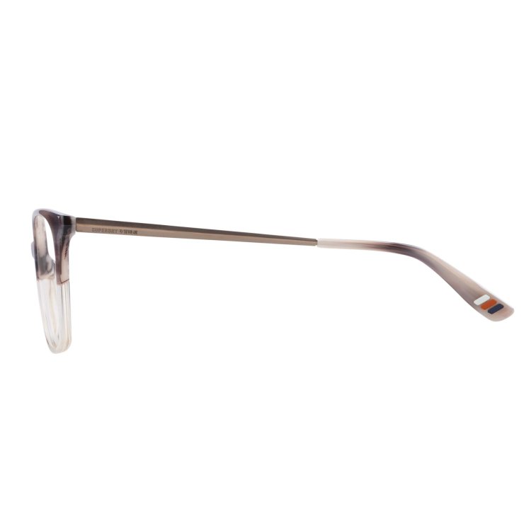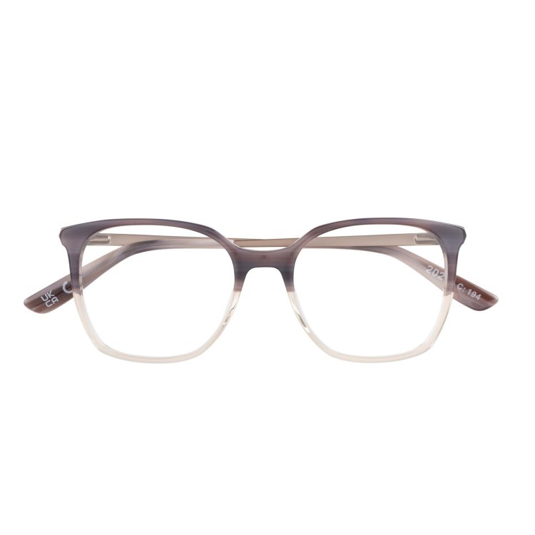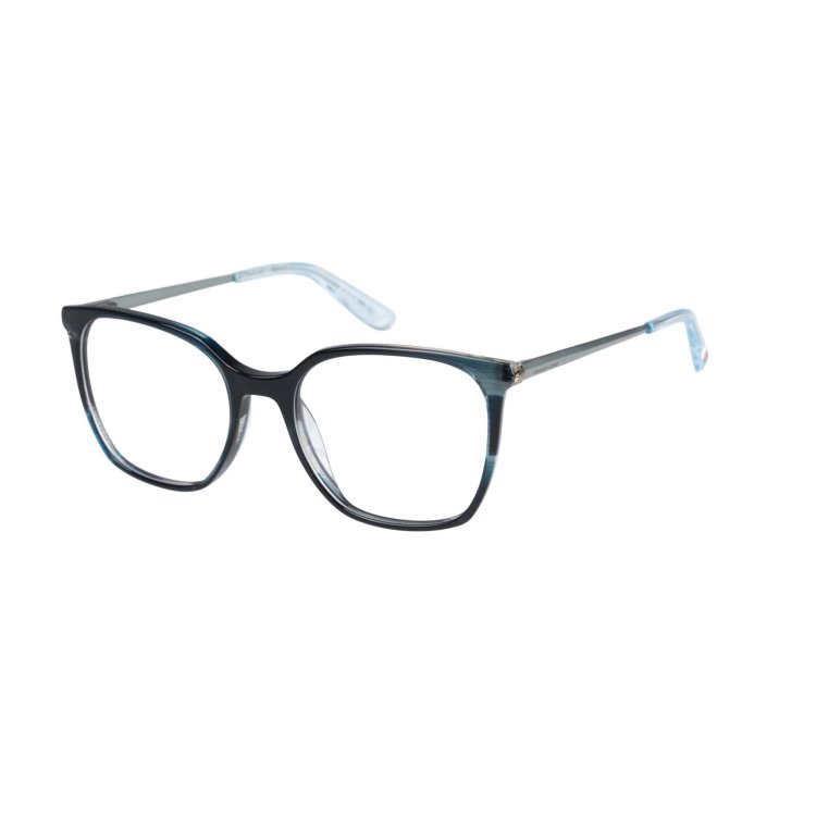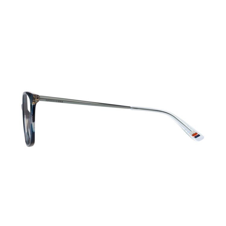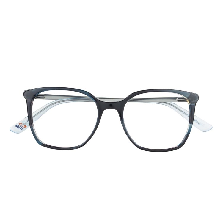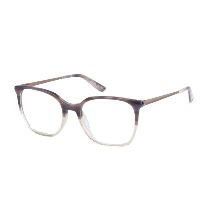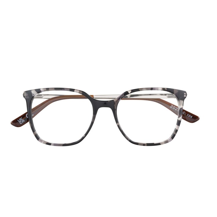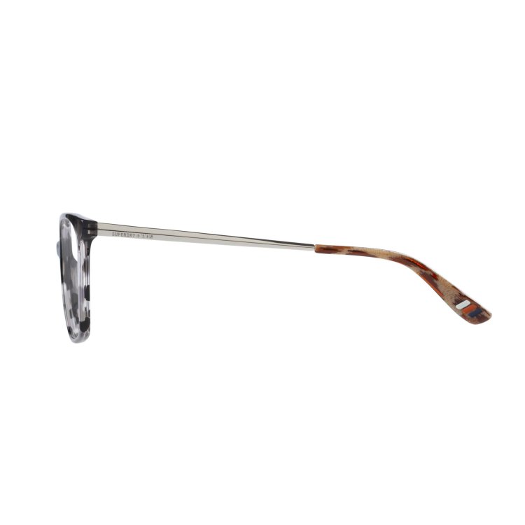 Slimline, deep angular square eye shape in acetate featuring prism shaped metal temple and hand painted detail
